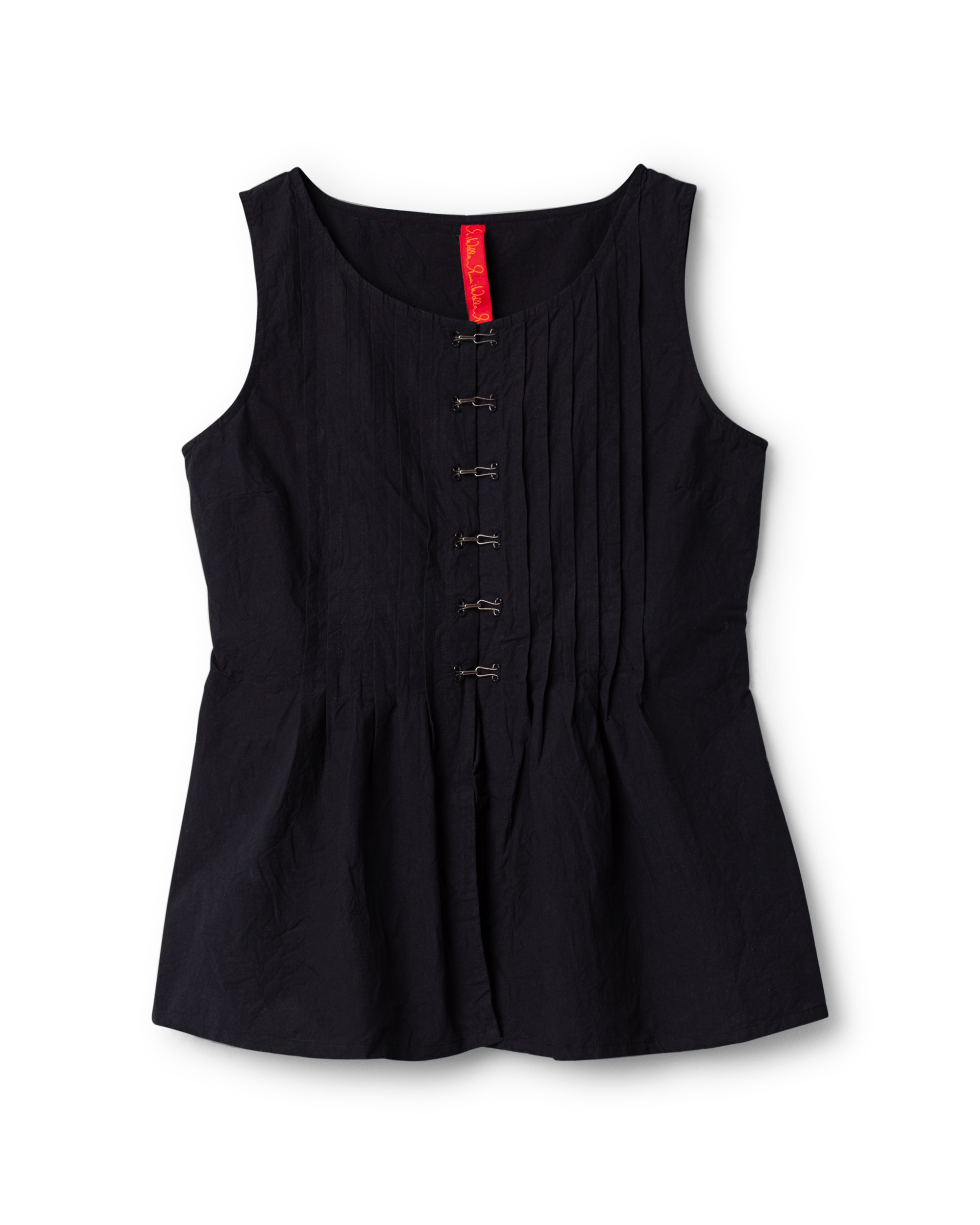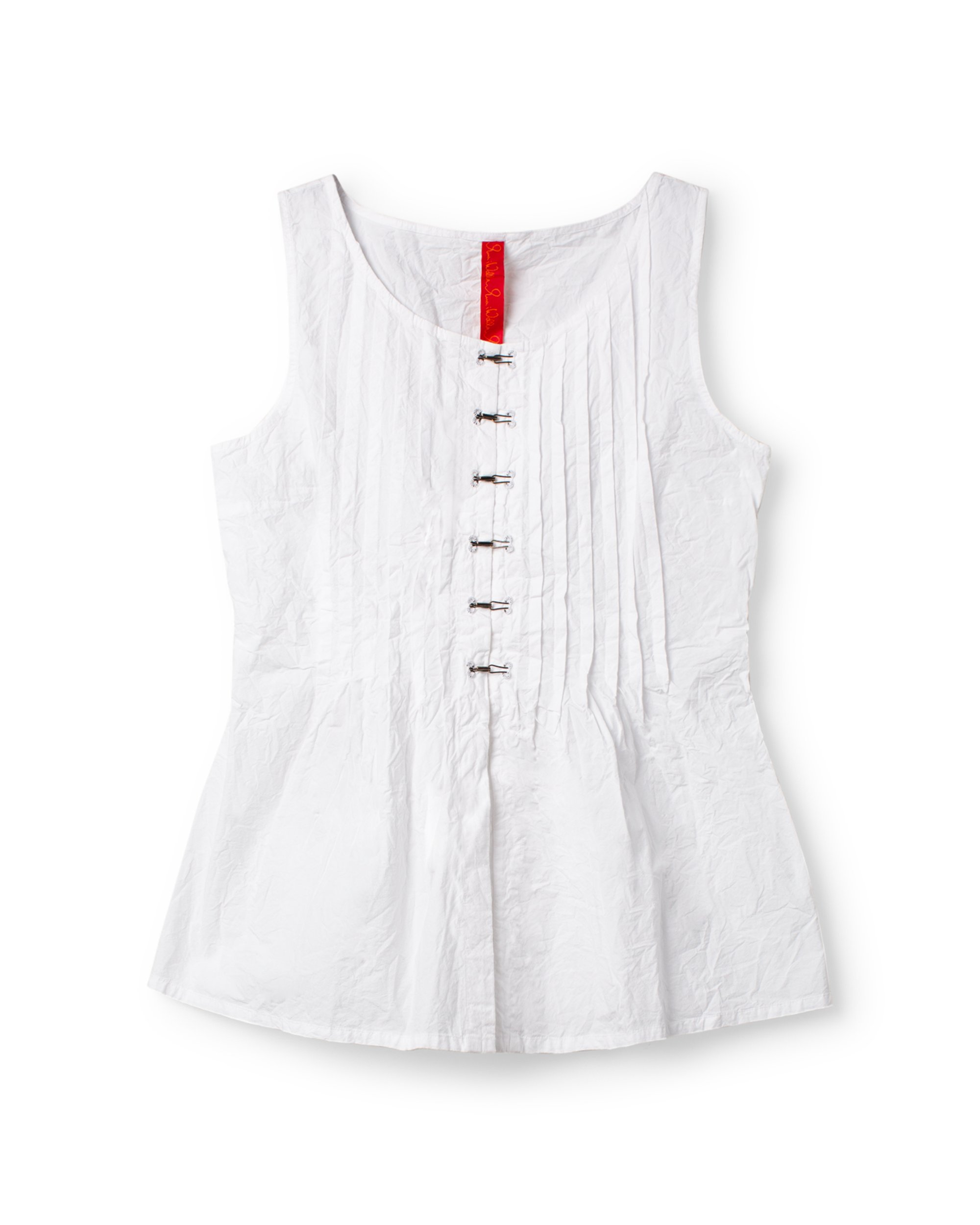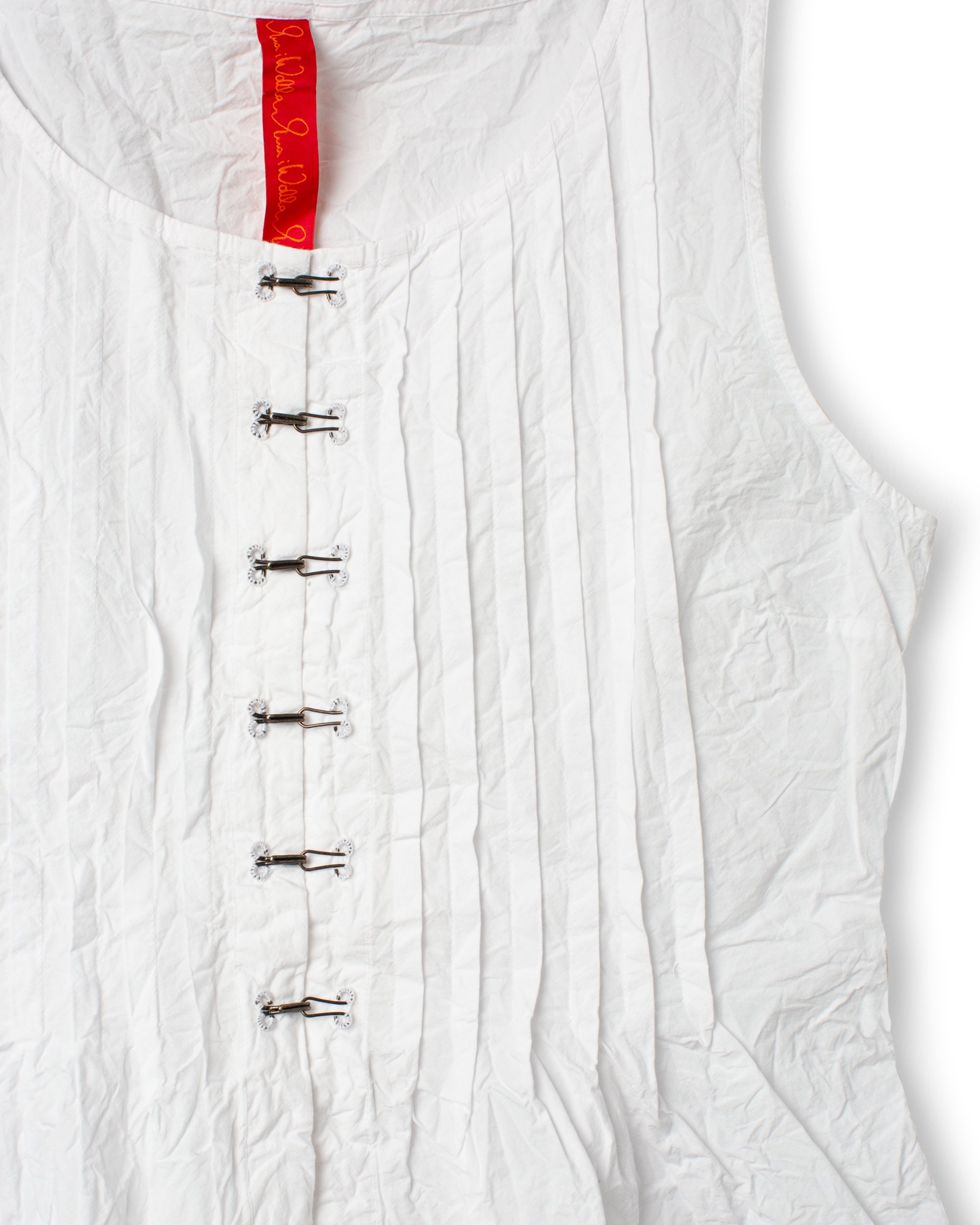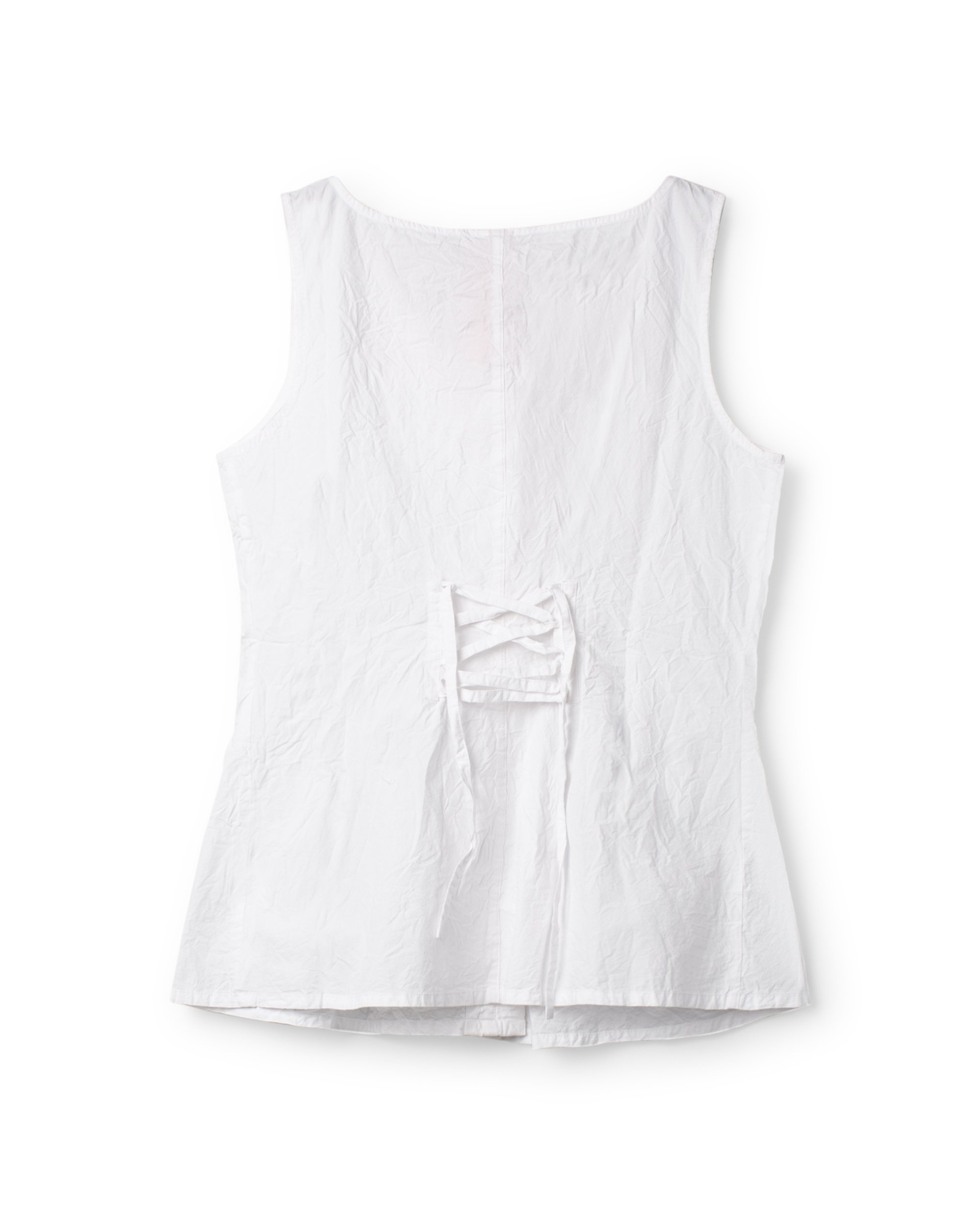 Top in cotton with decorative pleats, hook and eye buttoning at the front and lacing at the back.